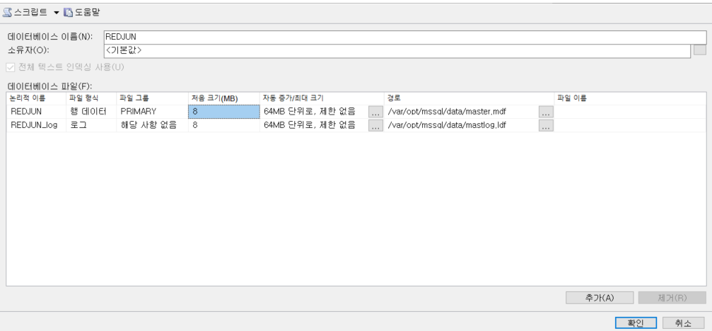 위 그림 1 or 쿼리를 보게 되면 파일의 초기 크기와 자동 증가량을 설정하게 된다.