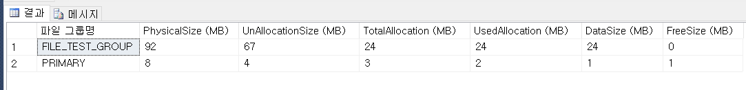 -- 파일 그룹 FILE_TEST_GROUP생성.