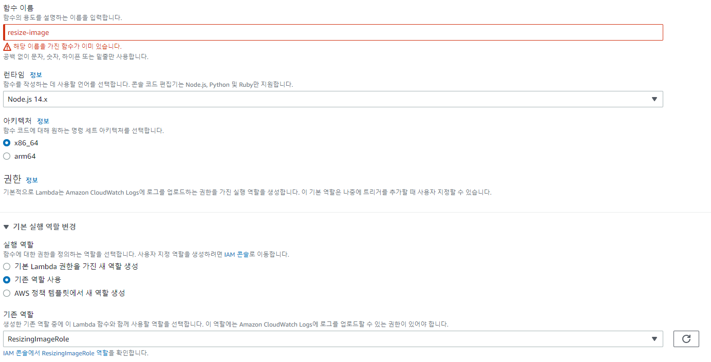 5. 런타임 "Node.js 14.x" 선택