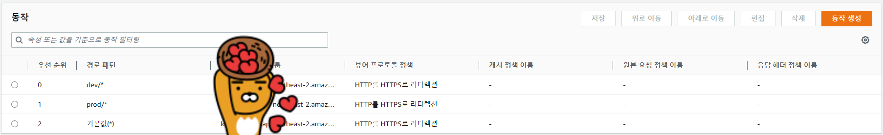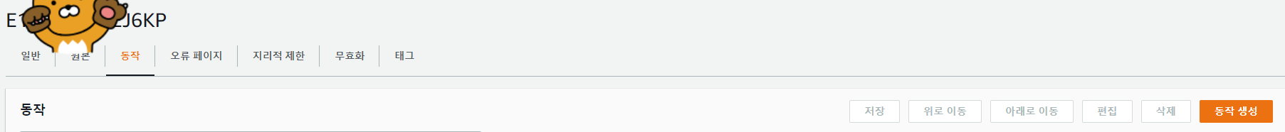 1. CloudFront 배포한 상세 페이지에 동작 탭으로 이동하여 동작을 생성해준다.